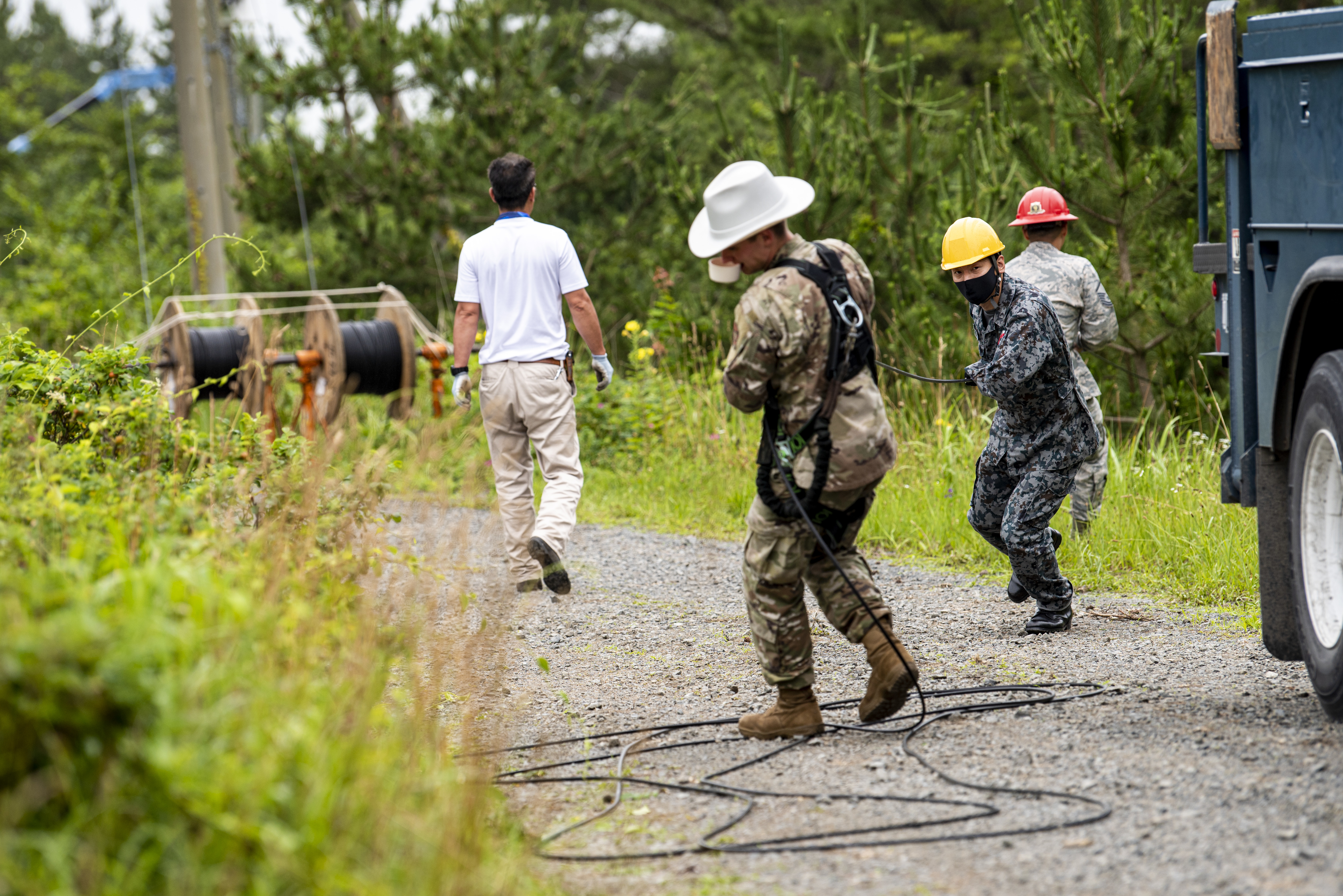 MISAWA AIR BASE, Japan -- The 35th Civil Engineer Squadron and their Japan Air Self-Defense Force Airmen counterparts, worked together to replace deteriorating high-voltage overhead lines at Draughon Range in Misawa, Japan, July 15.